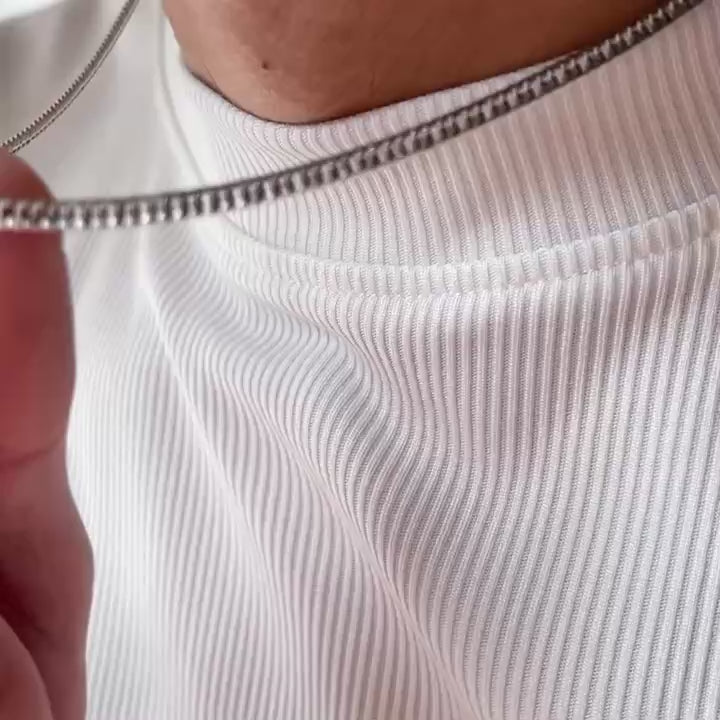 純度の高いスターリングシルバー(SV925)を使用した、存在感あるキヘイチェーン。 アジャスターで50cm-55cmの間で調整が可能です。