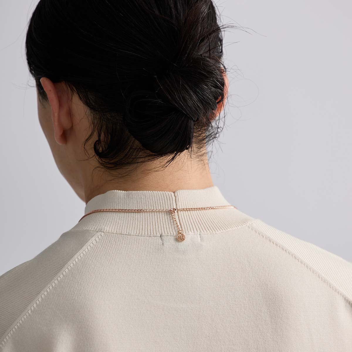 純度の高いスターリングシルバー(SV925)にロジウムメッキをした、存在感あるキヘイチェーン。5cmのアジャスターで長さの調整が可能です。