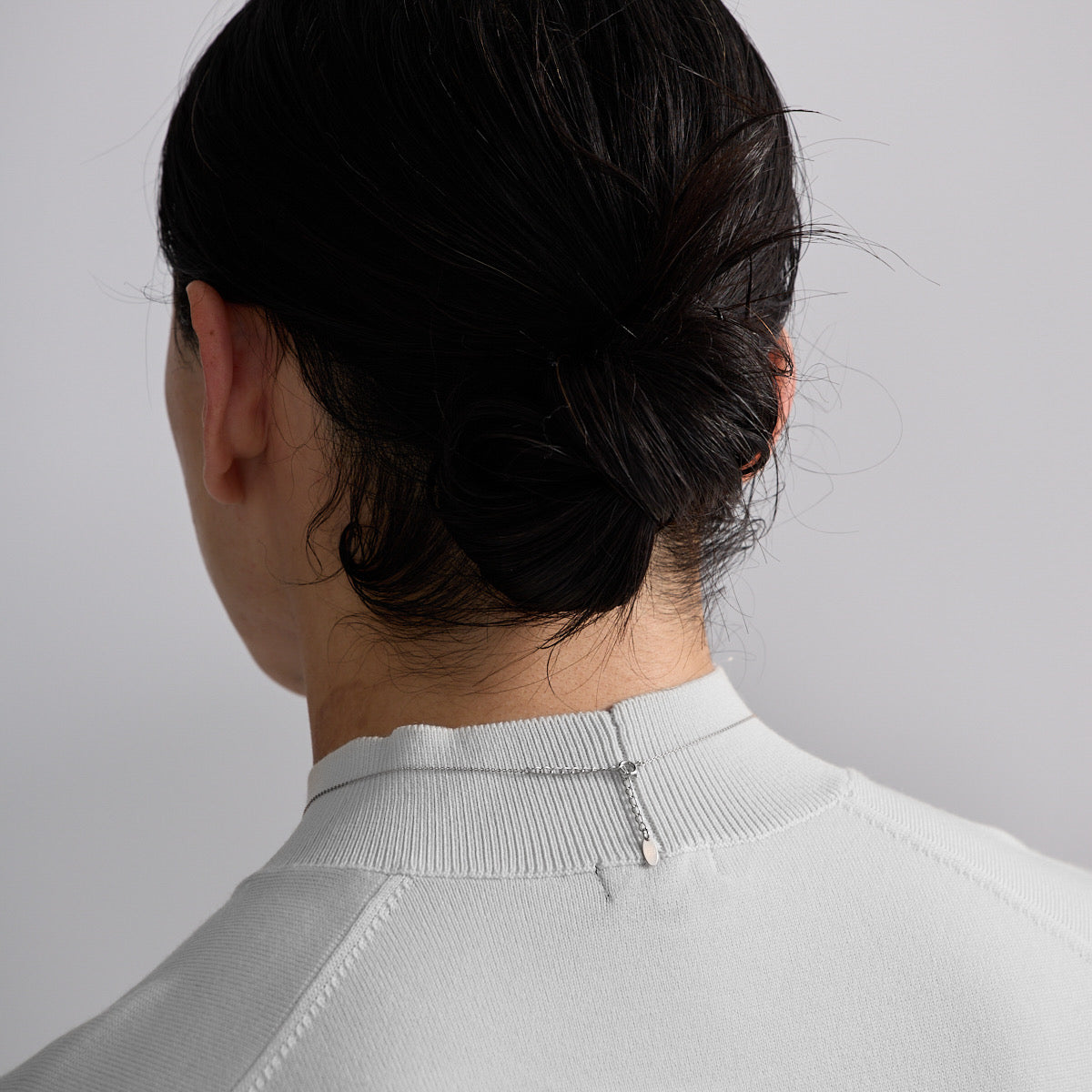 程よいサイズ感で主張しすぎず、胸元に上品なアクセントを添えます。シーンを問わず使いやすい、洗練されたデザインです。