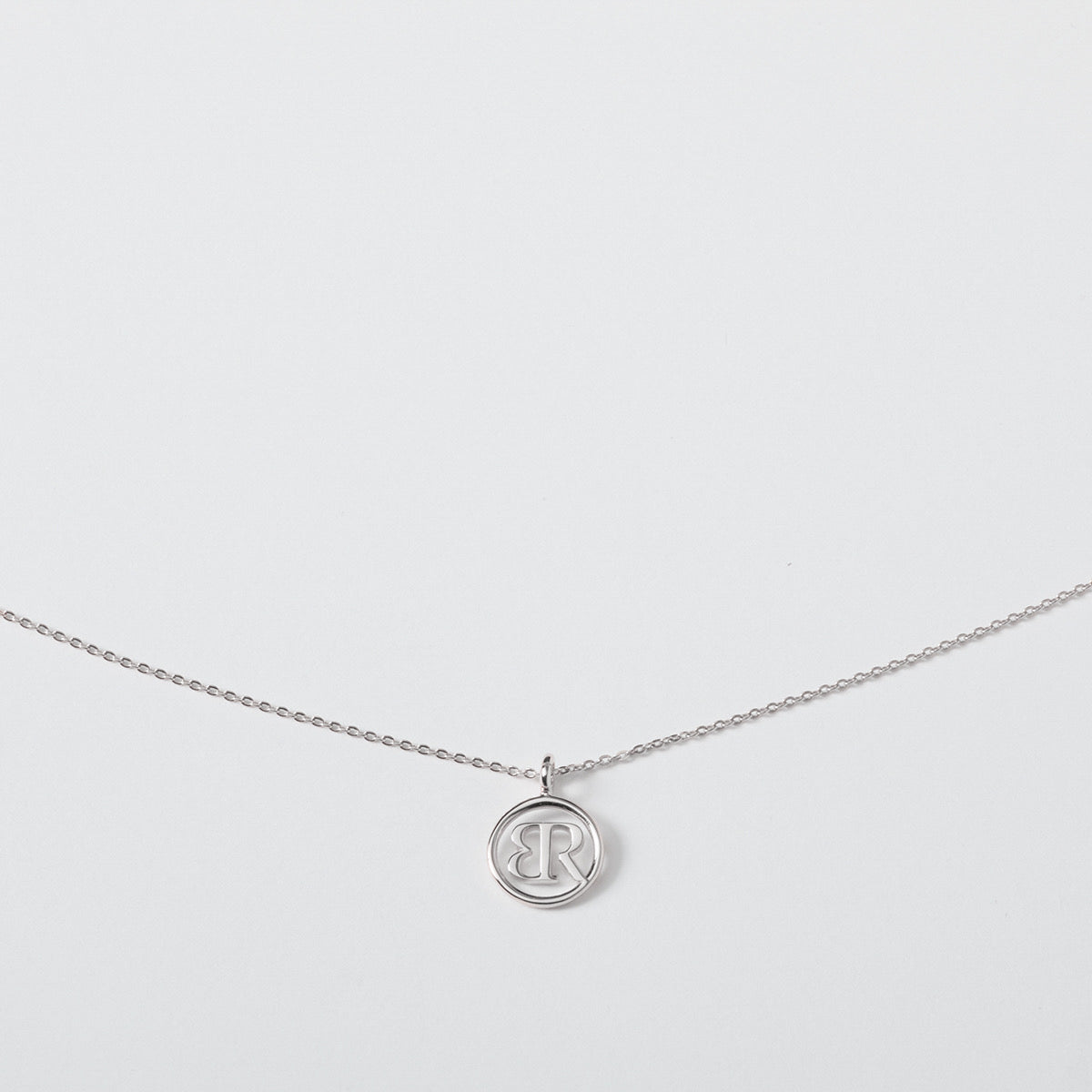 純度の高いスターリングシルバー(SV925)を使用。ラウンドフレームにロゴをあしらった、ミニマルなネックレスです。