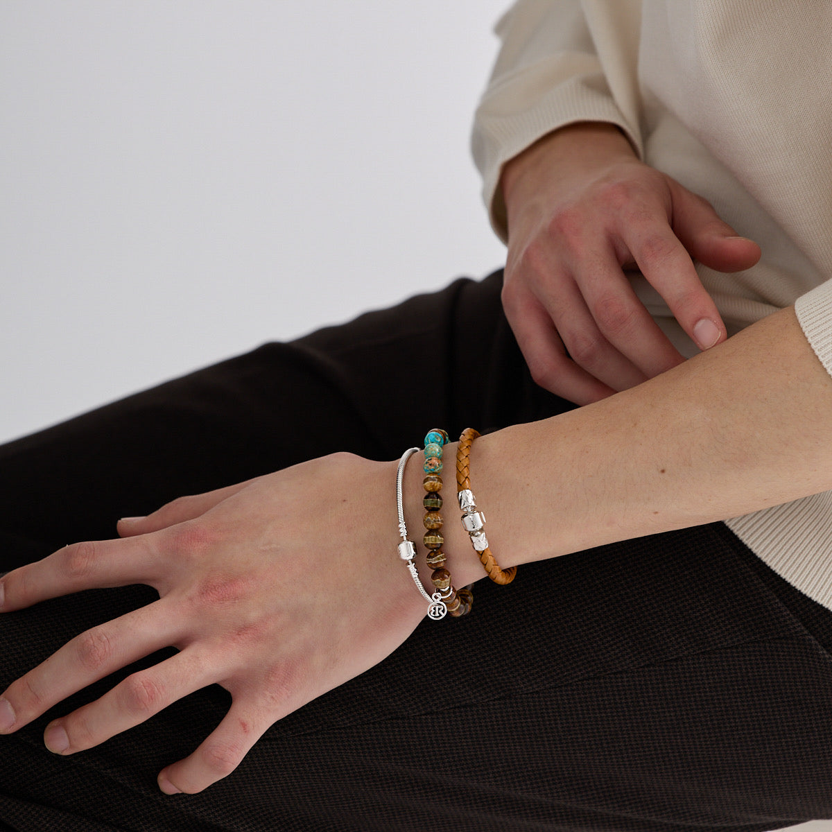 伸縮性のある糸でくみ上げられているので付け外しが容易です。アクセサリーに慣れていない方でも気軽に身に付けられます。
