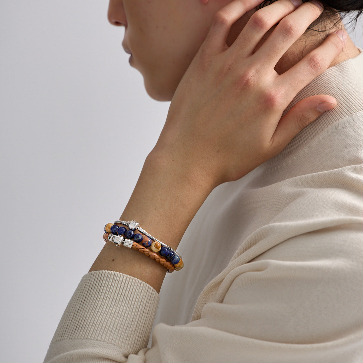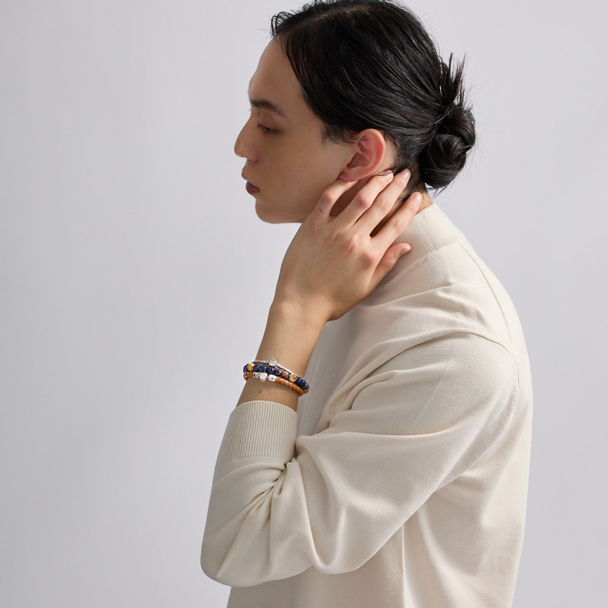 身につけた後は乾いた柔らかいクロスでほこりや汗を拭きとってください。 水に濡れた場合はすぐに柔らかいクロスで水気を取り、風通しのよい場所で充分に乾燥させて下さい。(高温での乾燥はおやめください)濡れ、水気によって石割れや風合いの変化を起こすことがございます。