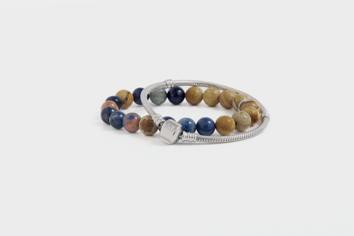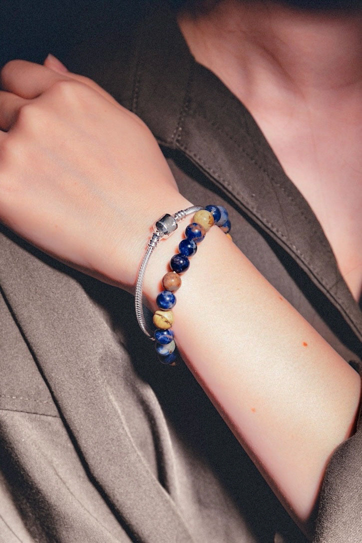 地球のような見た目の鉱石「オレンジソーダライト」と、鮮やかな「ピクチャージャスパー」を使い、ジュエリーデザイナーと職人がひとつひとつ想いを込めながら丁寧に作りました。