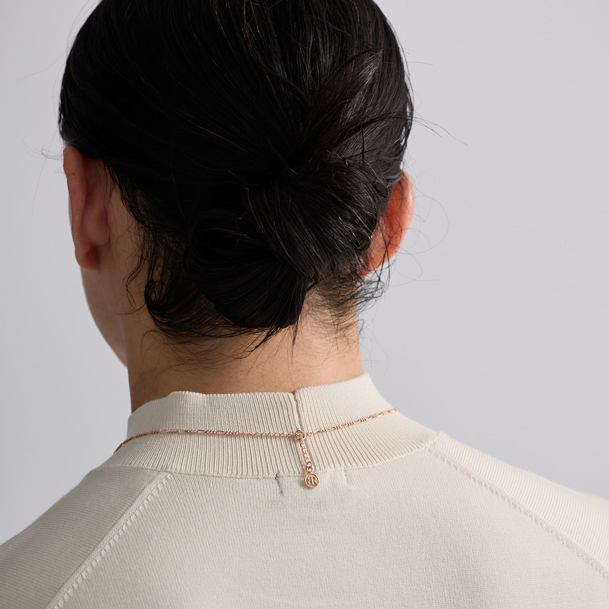 控えめなサイズ感は日常使いにぴったり。長さの違う2種類のチェーンをくみ込むことで、上品なデザインとなっております。