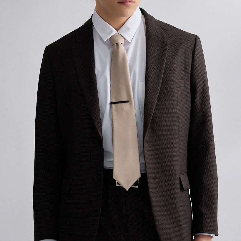 こちらはマットな黒のネクタイピン。メンズスーツでいう黒は最上級にフォーマルな色であり、モダンな色でもあります。おしゃれを演出できる上、コーディネートがし易いのがこの黒のネクタイピン。派手目なネクタイと合わせるもよし、モノトーンコーデで決めるもよし、色を選びません。ありそうで無かった、漆黒の大人かっこいいネクタイピンです。
