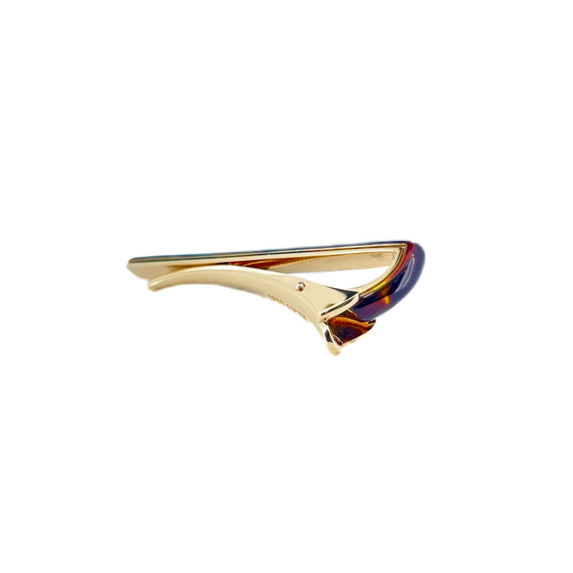 他では見たことのない、艶やかなべっ甲柄を七宝で表現したネクタイピン。話のネタになり「おしゃれ!」の声をよく頂きます。トラディショナルなスーツスタイルが流行る今、その雰囲気にも合わせることができる。誰ともかぶらない、トレンディさがあります。