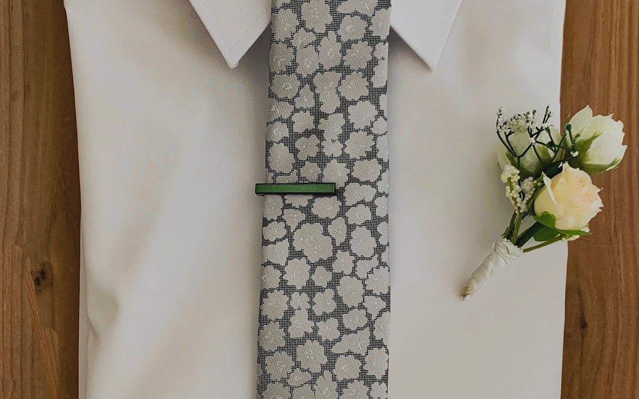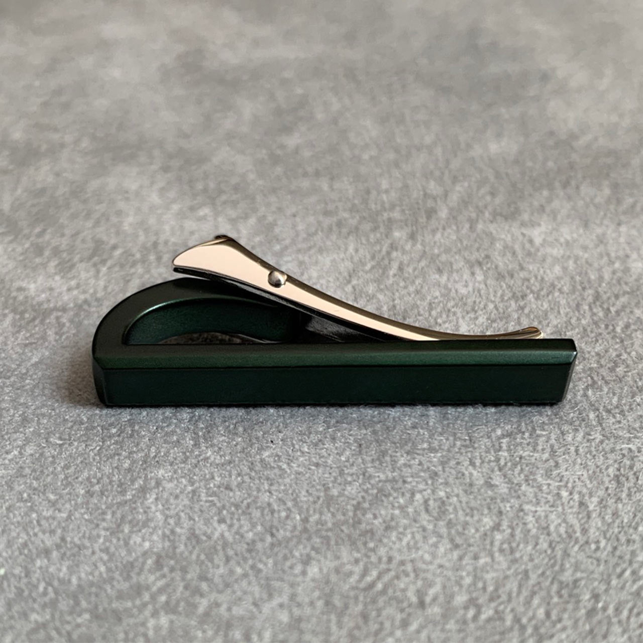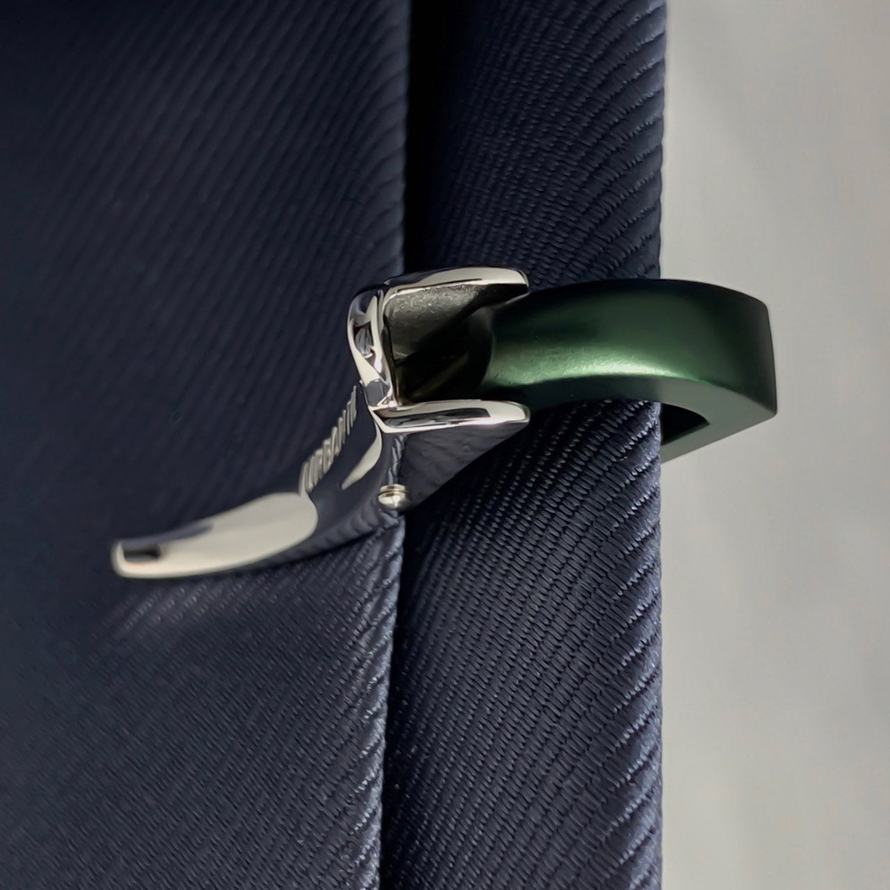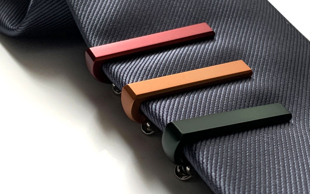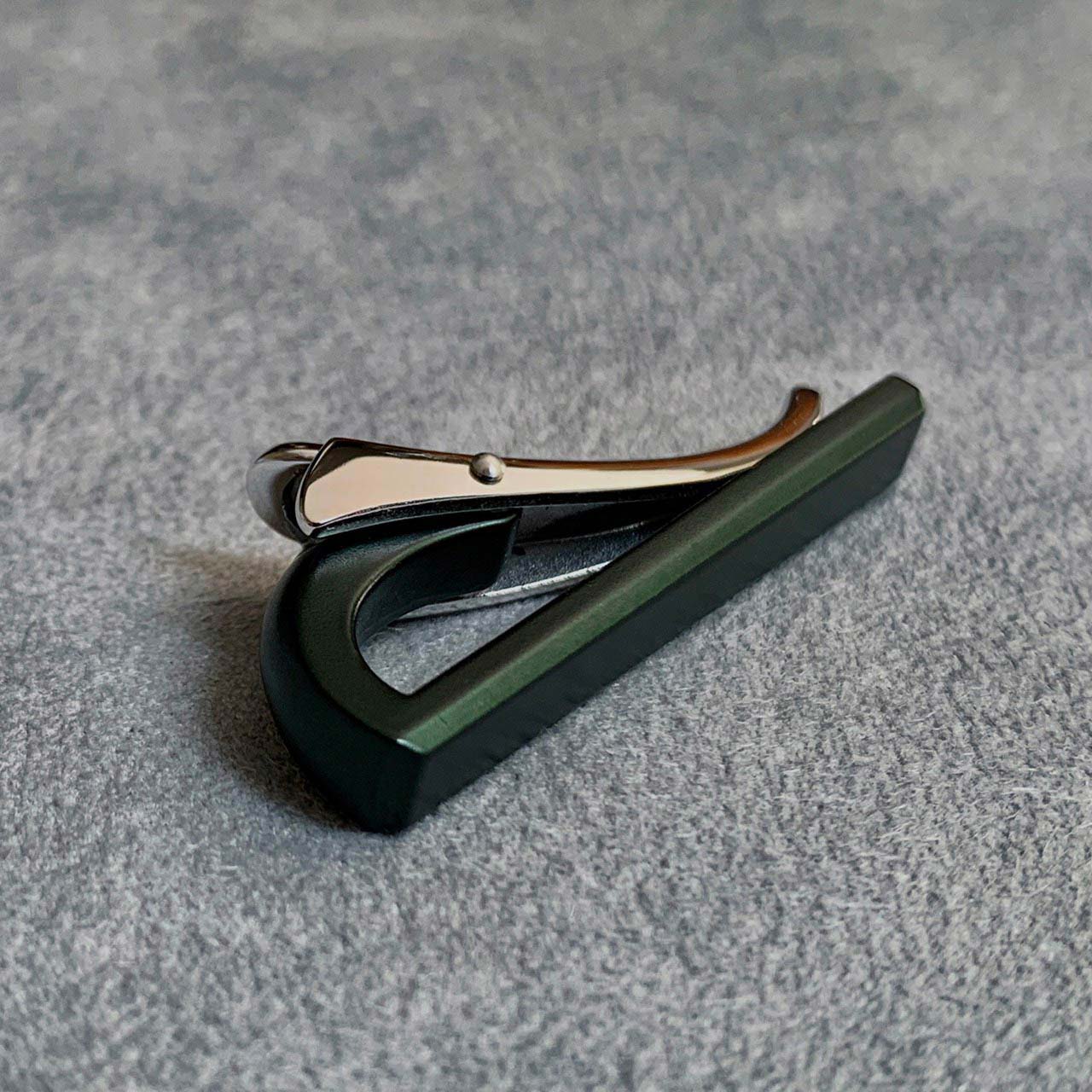 こちらの緑色カラーネクタイピンは透明感ある艶があり、絶妙な輝きをしています。落ち着いたカーキはメンズに人気な色。どのネクタイともケンカしにくく、使いやすいカラーです。ナロータイ、ニットタイと合わせてもおしゃれにきまります。