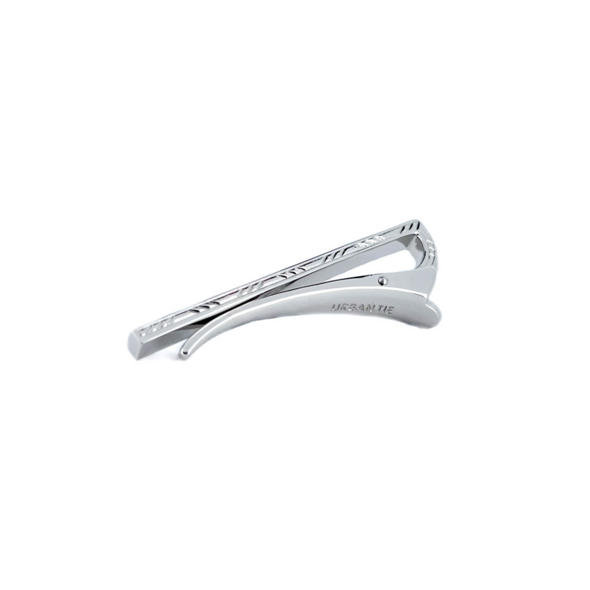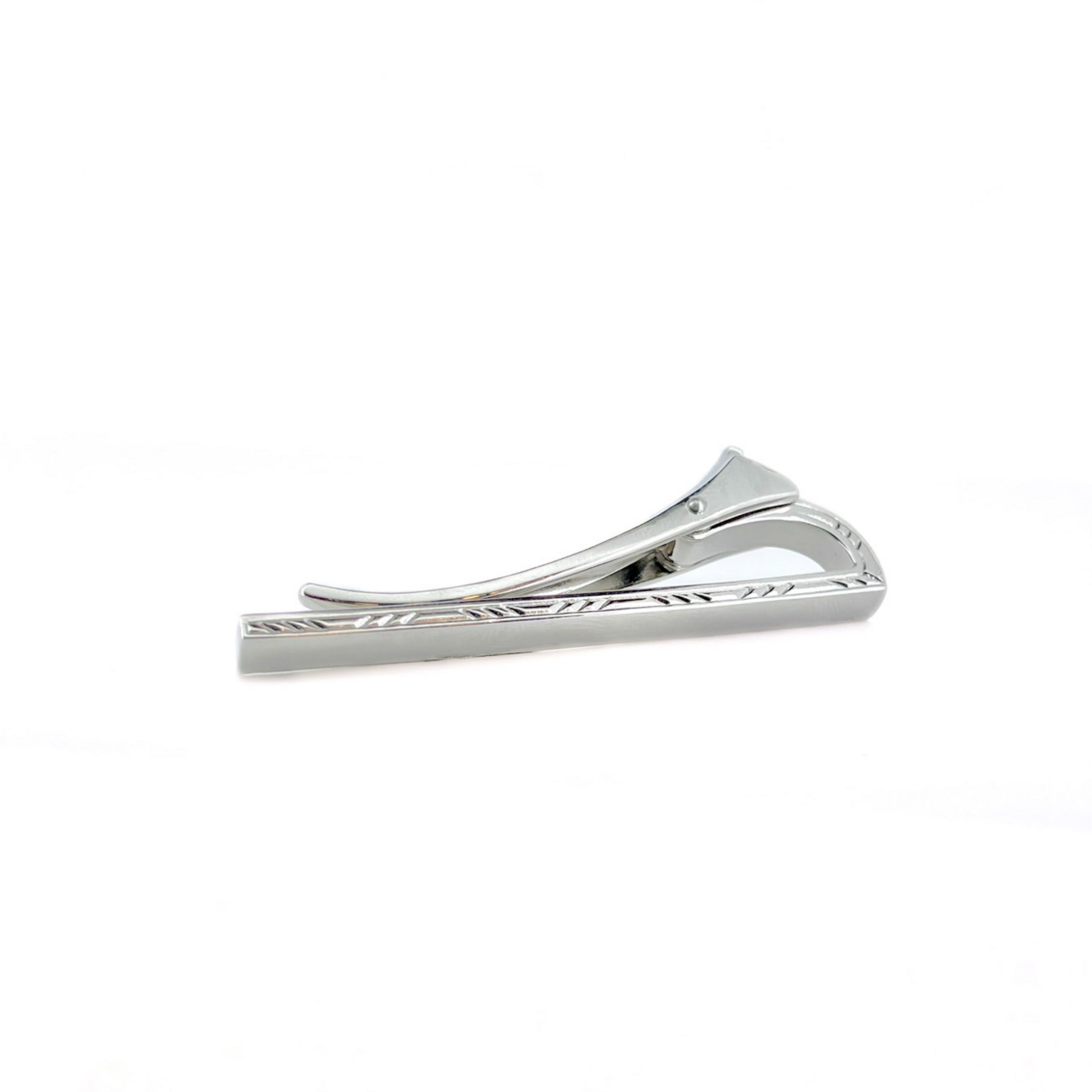 売上No. 1。スタンダードなネクタイピンをお探しでしたら、シルバーに限ります。こちらのネクタイピンは装着すると鏡面がキラリと光り、あえてあまり目立たない側面に模様が入っているのがポイントです。どんなスーツスタイルにも合わせられる無難さと、したたかな存在感を兼ね備えており、さりげないおしゃれをしたい方に打って付けです。